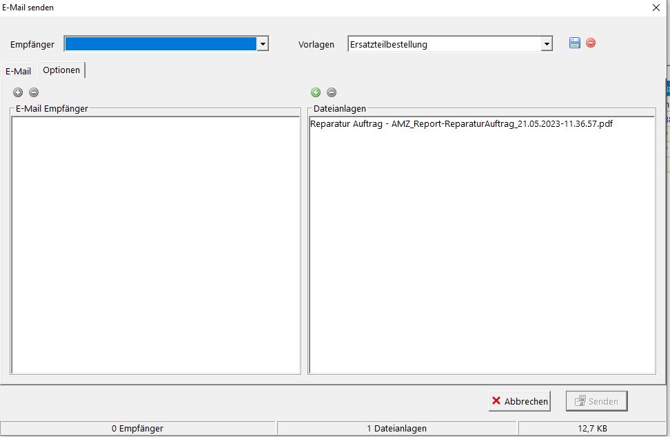 Es können beliebig viele Dateianlagen hinzugefügt werden. Beachte aber, dass E-Mails immer einer betimmten Größenbegrenzung unterliegen. Zur Orientierung wird in der Statuszeile die gerade aktuelle Anzahl der Dateien und die gesamt verwendete Größe der Dateianlagen angezeigt.
